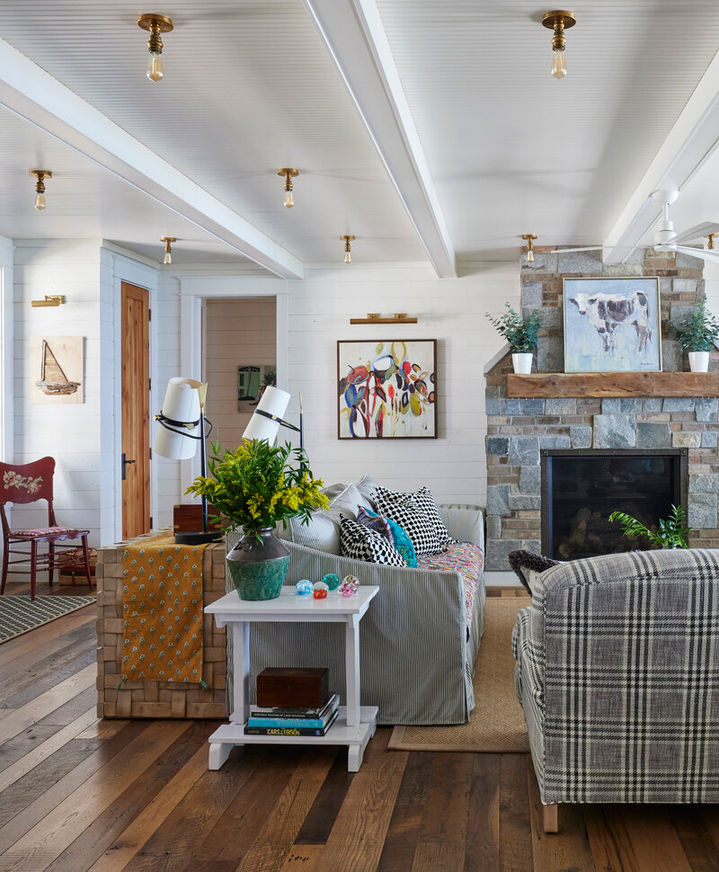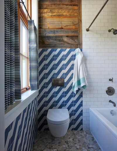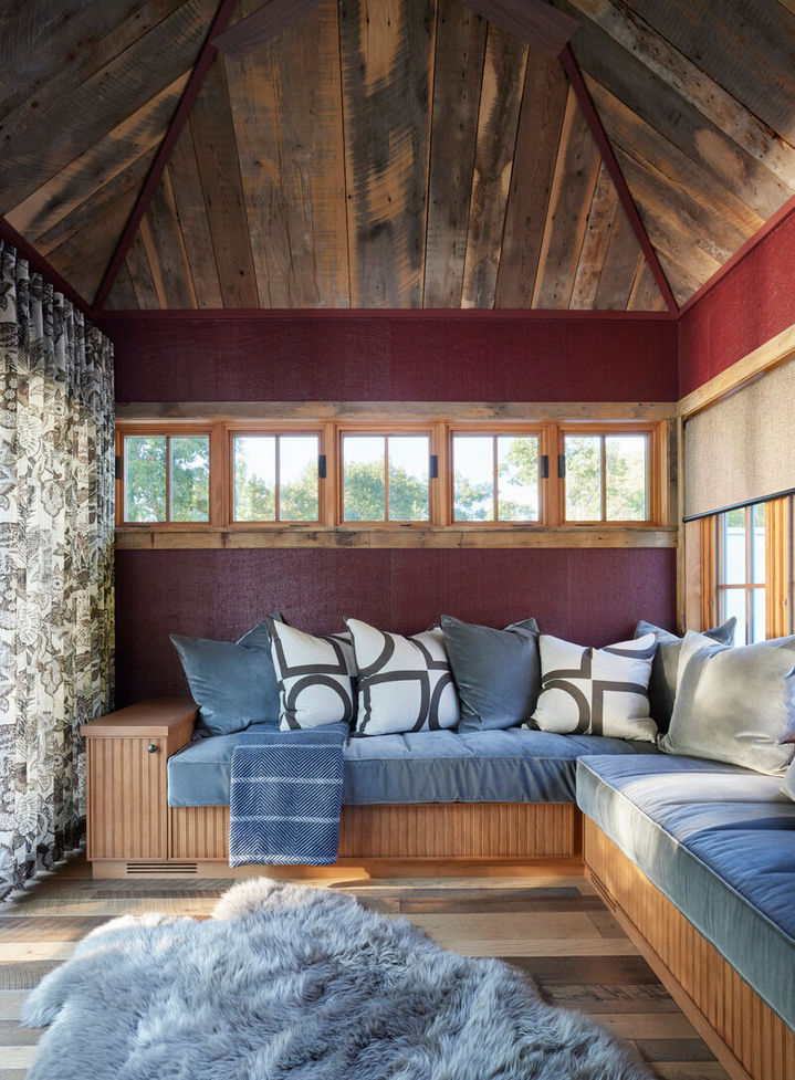 Michigan has a long history of vacation homes on the lake. This family set out to create a lake home that would bring their children, grandchildren, friends and extended relatives together for years to come, making a shared legacy of cherished memories to span generations. The design concept was to create a home that felt like it had age and permanence, using materials that would patina over time and add to the developing character. This resulted in a very layered approach to wall and ceiling finishes, reclaimed wood flooring, unlacquered metals and a delightful mix of warm and cool tones throughout the home give it a casual prominence. The personality of the home also lies in the use of color and pattern. Blue, red, coral, and green used throughout with bold wallpaper and fabrics add to the playful atmosphere. A new build, our team was commissioned to provide interior design from concept to completion outfitting all spaces with finishes, millwork, and furniture. Completed in fall of 2019 many years of family fun lie ahead for this family retreat!